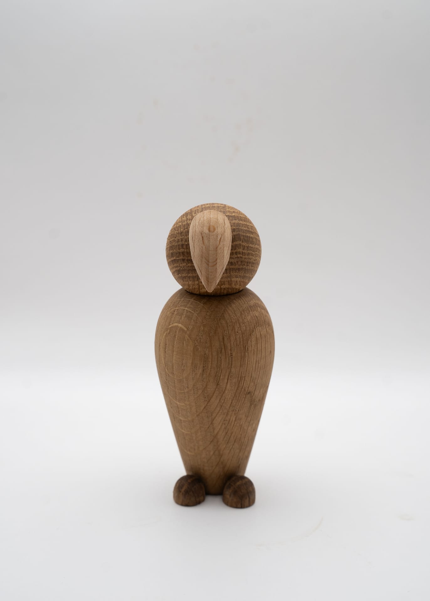 Den er lavet i olieret eg, som giver et lyst og varmt udtryk og fremhæver træets naturlige struktur. Næbbet er udført i ahorn, der med sin lyse tone skaber en blød og harmonisk kontrast.